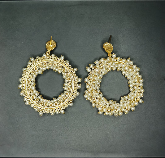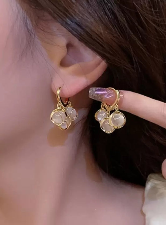 Gold Opal Stone Luxury Hoop Korean Earrings