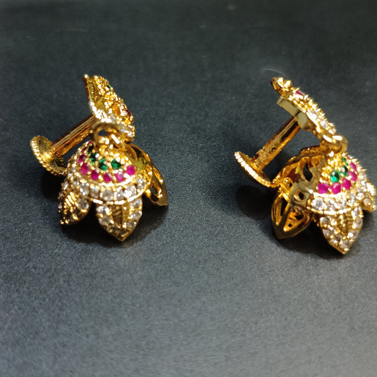 Aqua Blue Parrot Dual Tone Jhumka Earrings