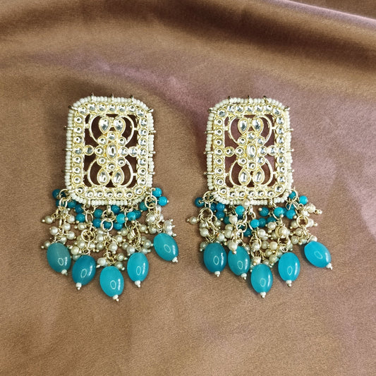 Meenakari Pearl Tassel Jhumki Earrings (Blue)