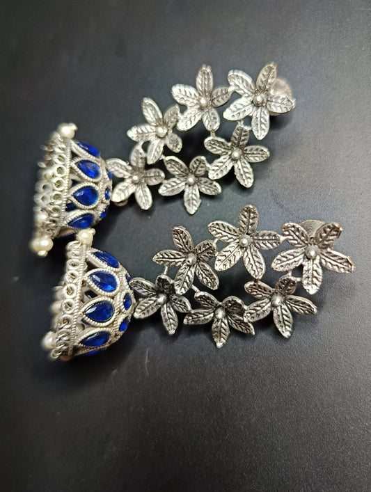 30% OFFRoyal Blue Silver Flower Jhumkas
