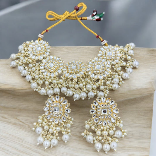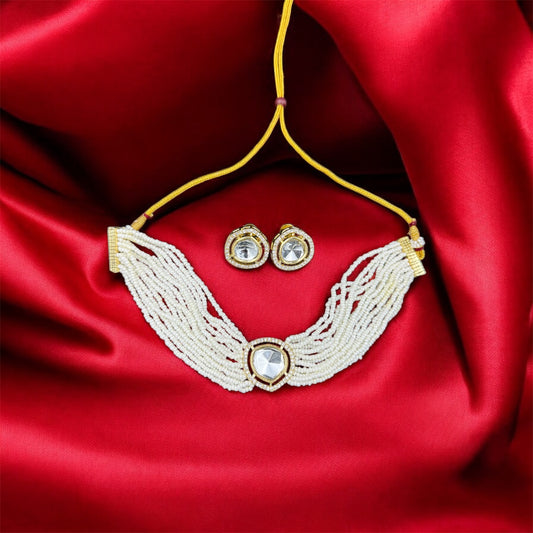 Zayra Pachi Kundan Ivory Pearl Necklace Set