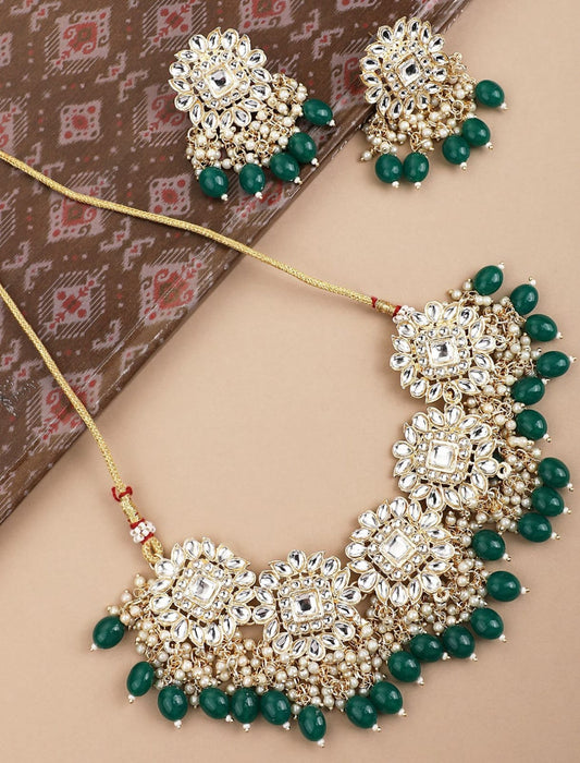 Zayra Pachi Kundan Green Pearl Necklace Set