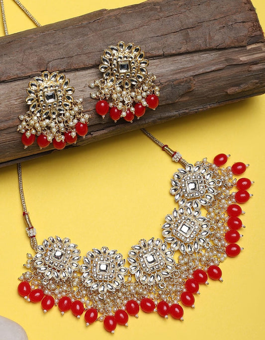 Zayra Pachi Kundan Red Pearl Necklace Set