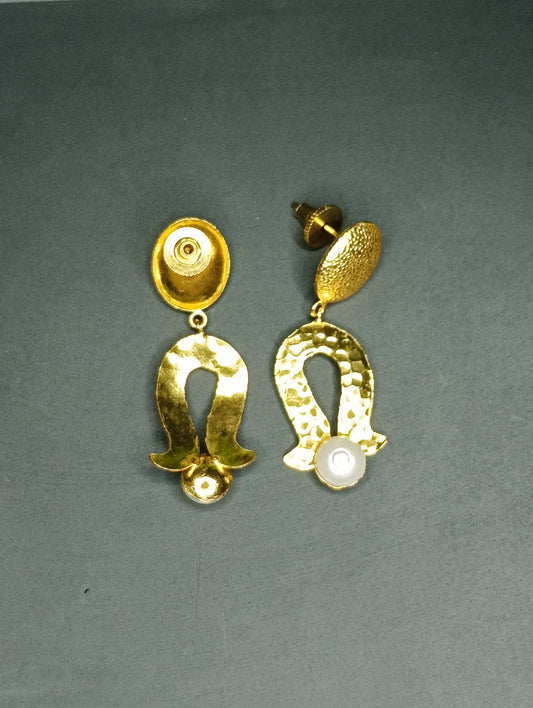 Golden hammered Brass and pearl Earrings