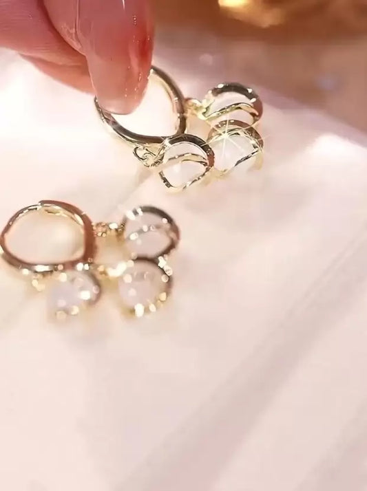 Gold Opal Stone Luxury Hoop Korean Earrings