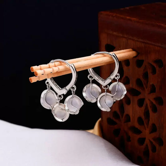 Silver Opal Stone Luxury Hoop Korean Earrings