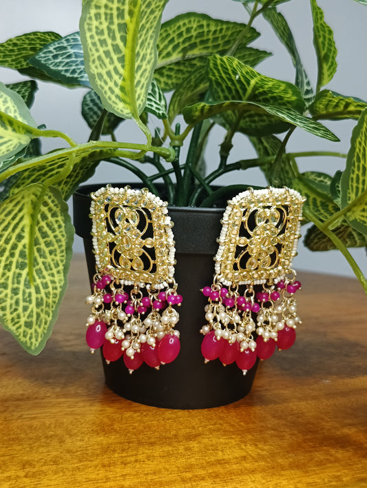 Rani Pink Kundan Pearl Cluster Earrings