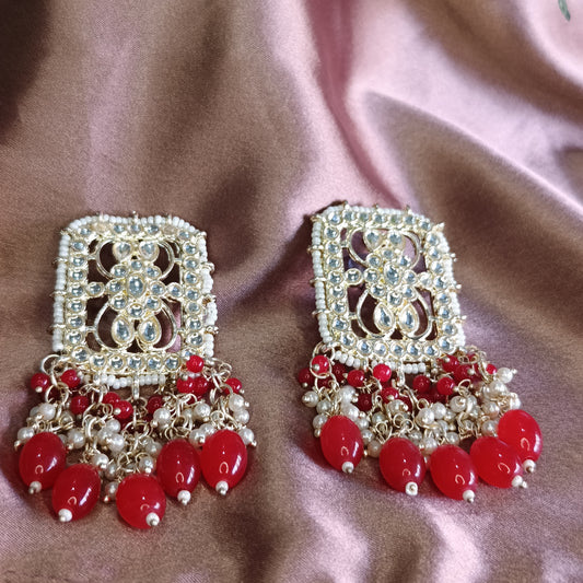 Red Kundan Pearl Cluster Earrings