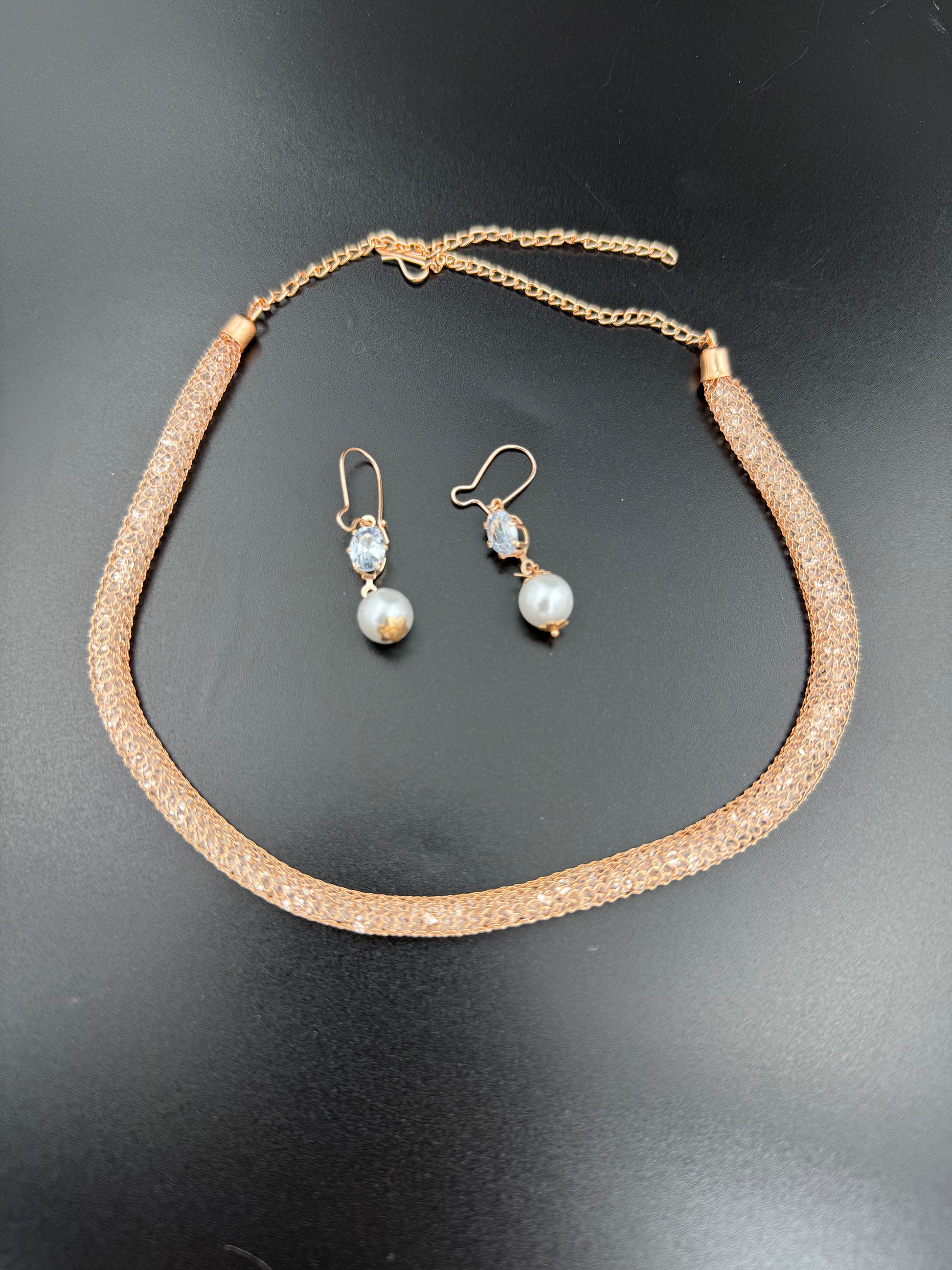 Add a touch of refined luxury to your look with this rose gold mesh tube necklace set, designed for those who love understated glamour. The necklace features a shimmering textured mesh tube design that sparkles subtly with every movement.