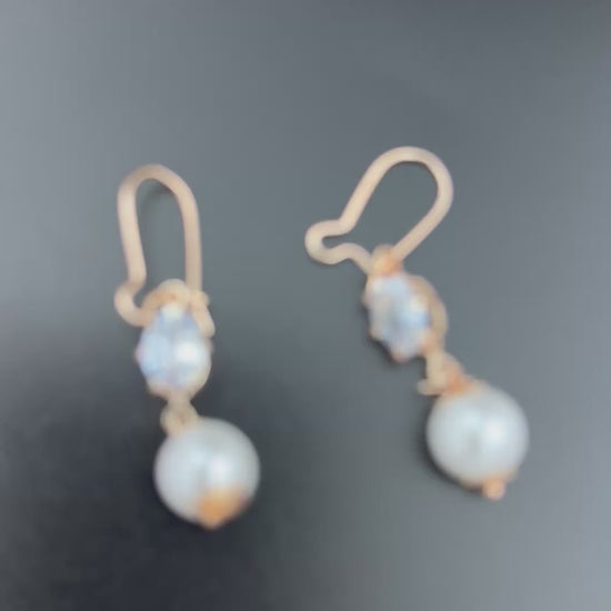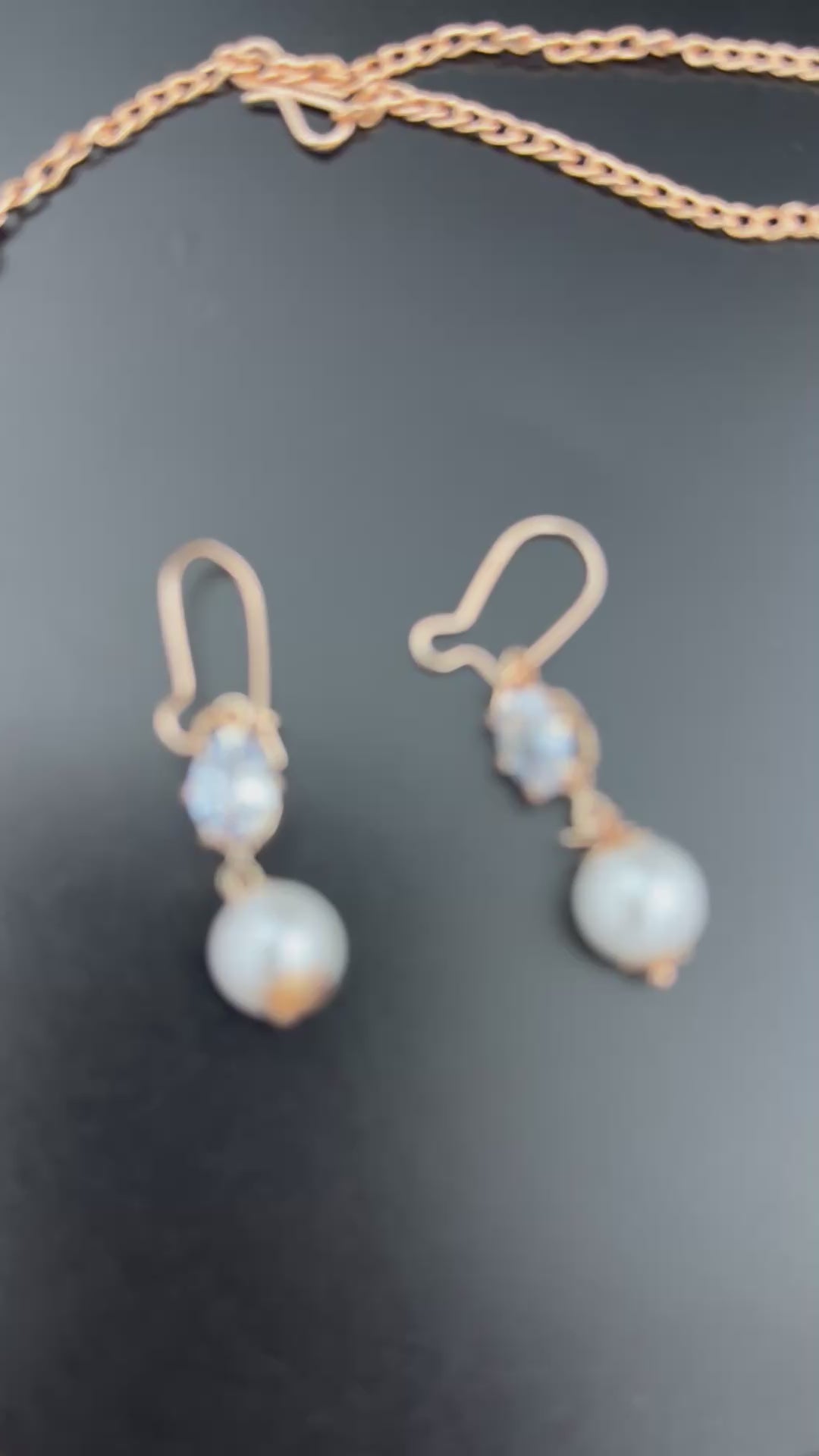 - Earrings: American Diamond and pearl bead drops on fishhook setting