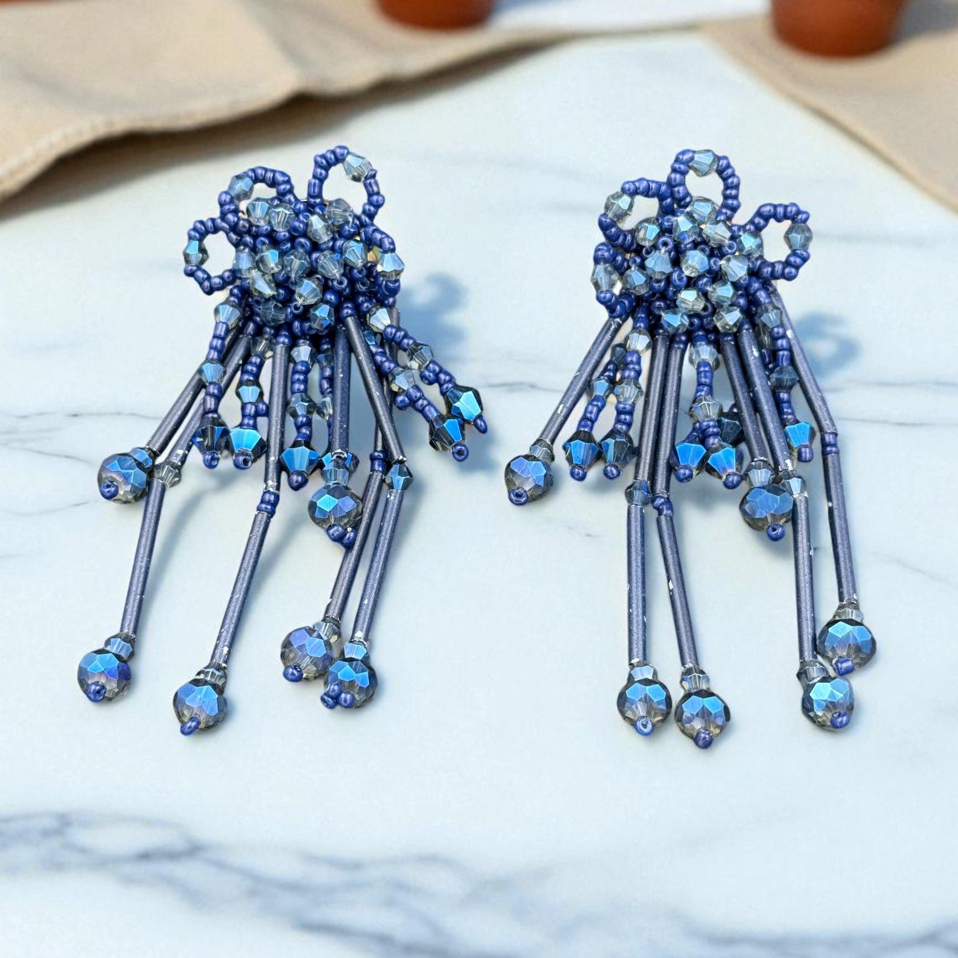 Royal Blue Flower Beaded Dangler Earring